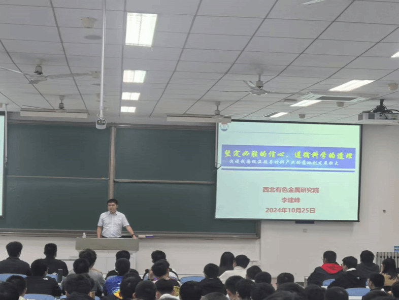 通过回顾超导材料产业从艰难落地到发展壮大的艰辛历程,李建峰总结了超导人敢为人先的探索和创造精神。他勉励同学们在现在的学习和将来的工作生活中,都能以这种勇敢拼搏、不惧险阻的意志力面对挑战,尤其是西工大学子,在面临重大战略任务时,更要勇于承担,为国铸剑!面对取得的丰硕成果,他告诉同学们,只要肯尽心尽力去做一件事,总会得到想要的结果。“勤学习,肯钻研,练就过硬本领,才能担重任;立大志,明大德,心系国之大者,方可成大才!”最后,李建峰向同学们分享了习近平总书记关于青年人成长成才的重要讲话,鼓励大家认真学习,矢志奋斗,努力成长为“专业精、系统强、重实践、能担当”的“总师型”人才,为我国材料科学和制造业高质量发展做出青年一代的贡献。