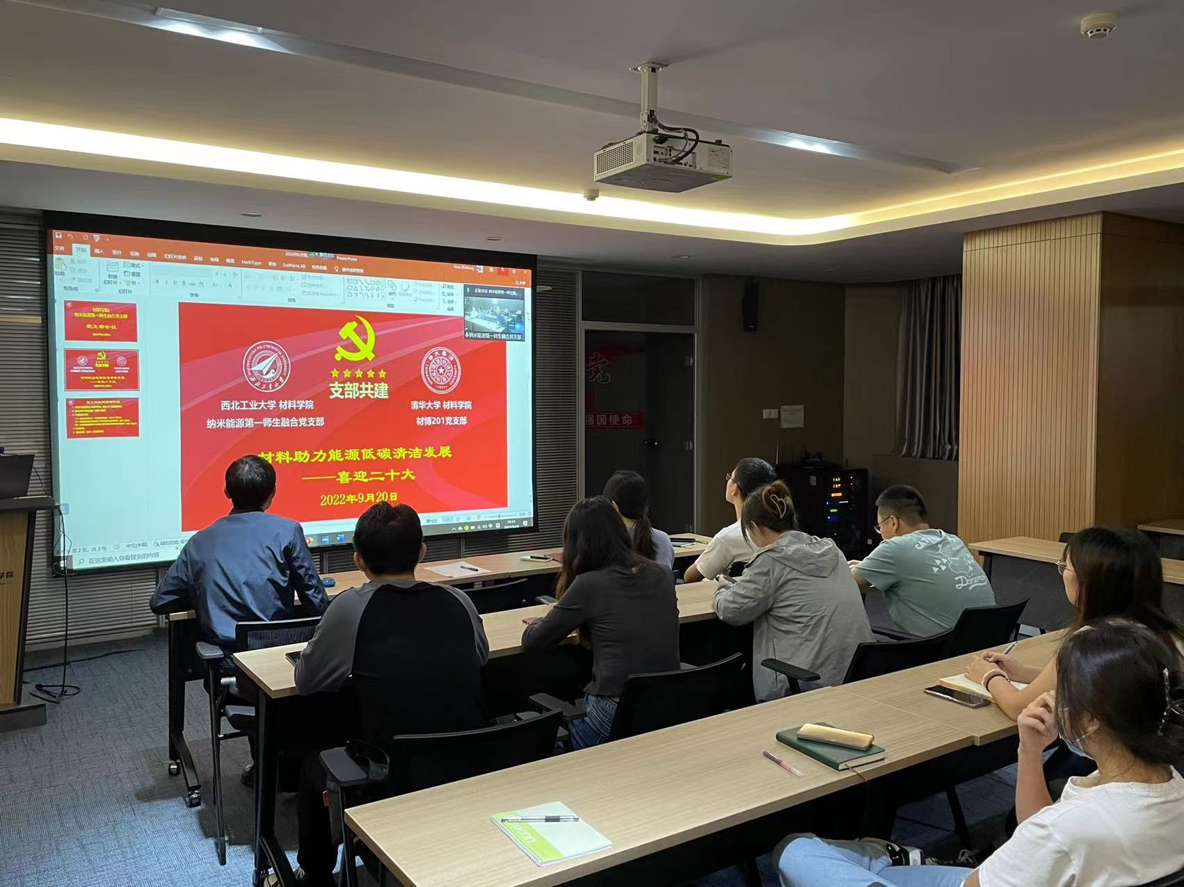材博201党支部通过视频连线的方式举办了“喜迎二十大——材料助力能源低碳清洁发展”主题共建活动。纳米能源第一师生融合党支部书记王建淦、清华大学换妻