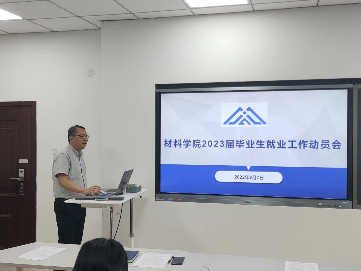 2023届毕业生就业工作动员会在公字楼339会议室举行。学院党委副书记蔡利剑、2023届本科生专职辅导员贺亦柏、硕士研究生专职辅导员朱孟花及各班班长参加。动员会由换妻