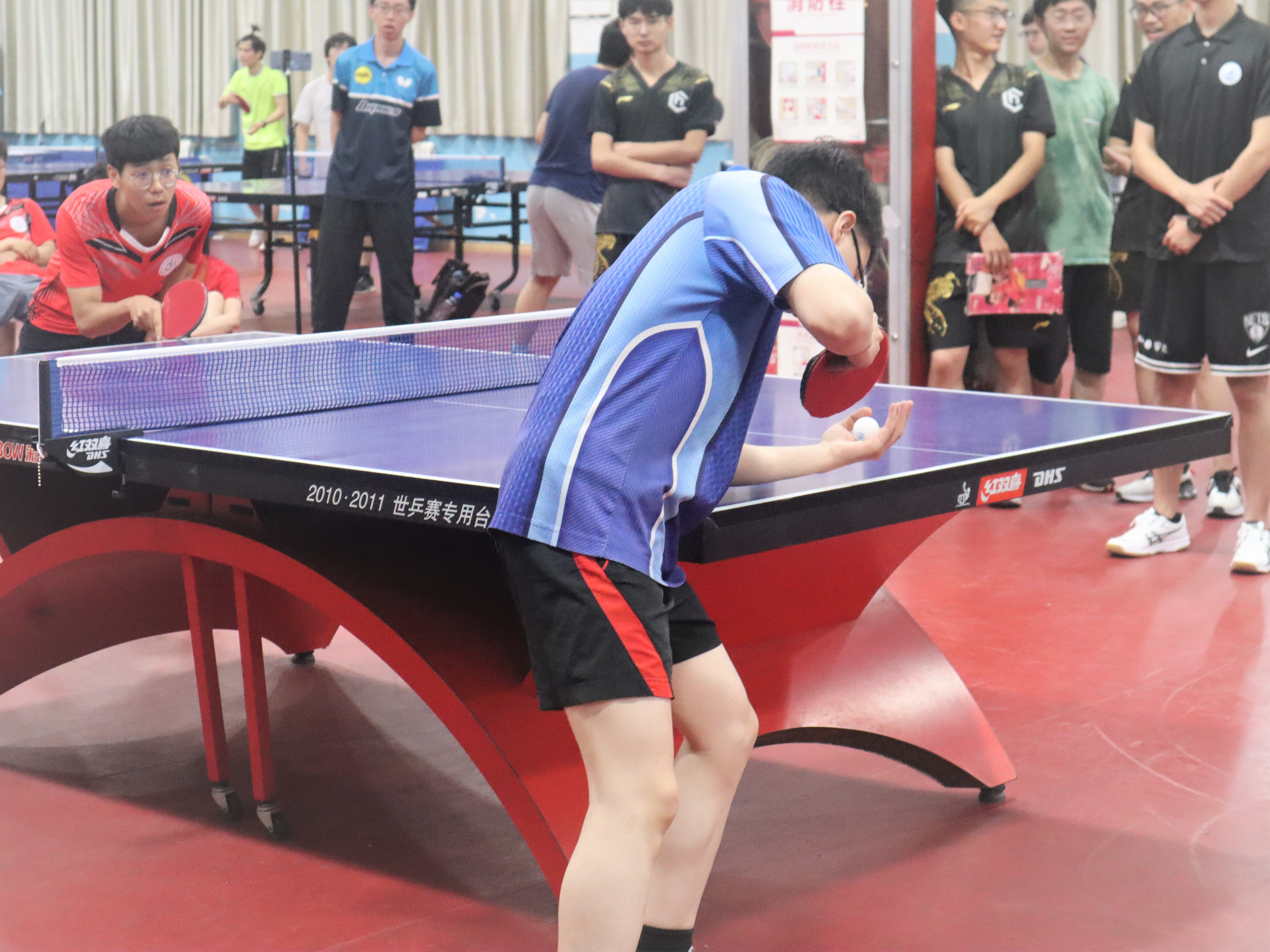 代表队由秦镇涛、刘冲、罗际韬、由博杰、郭鸿瑜、田静若兰、武行组成。团体赛比赛按顺序为男子单打、女子单打、双打、单打、双打五个大场,先赢得三场的学院获胜。6月4号小组赛阶段,换妻