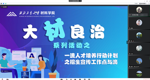 蔡利剑代表学院向所有参加招生宣传工作的老师表示感谢,感谢大家对本科招生宣传工作的支持。为做好今年的招生工作,学院特别邀请了荣获“2021年本科招生宣传先进个人”的李付国教授分享招生宣传工作经验与体会。李付国教授通过点滴小事例,汇聚为国选才大情怀,从时间点、切入点和关键点说起,讲出了招生宣传的流程和策略,从公诚勇毅,一步一步做起,到聚滴创新,全环节着力、全过程在线、全流程参与。讲好“西工大故事 ”,说明白“西工大现象”,把一个“五好”换妻