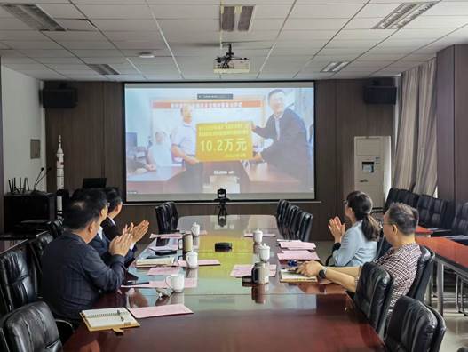 与广西融水县拱洞乡龙培村线上召开捐资助学总结座谈会。融水县教育工委副书记杨学臻、拱洞乡党委书记石荣福、学校挂职融水县常委、副县长管兴华、换妻