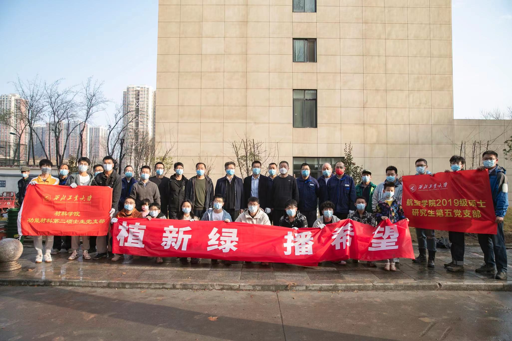 12日上午八点大家在7号楼集合,按照两人一组分工,在王宇波等老师带领下,全体参与师生党员同志共同完成了树木种植。