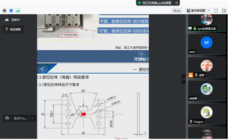 中心张艳敏工程师开展了主题为《扫描电镜原位拉伸和原位加热实验的测试及应用》的学术交流,首先介绍了Carl Zeiss Gemini 500扫描电镜仪器基本配置、技术指标以及功能特色,详细讲述了原位拉伸和原位加热实验中样品要求、操作技术、常见问题以及注意事项,重点展示了316L不锈钢在原位拉伸过程中的微结构演化、钛合金扩散焊接头和Ti2AlNb金属间化合物原位拉伸、钛基复合材料和AlSi10Mg原位加热等典型应用实例。
