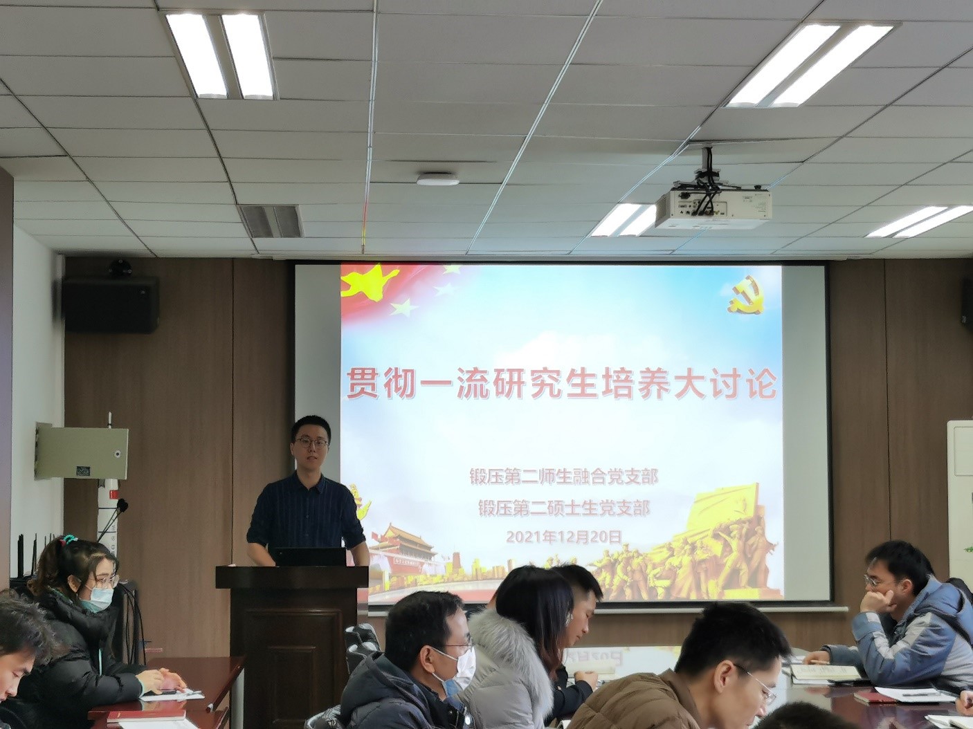 为深入学习贯彻十九届六中全会精神,贯彻一流研究生培养,以党建促科研,提高支部战斗堡垒作用,12月20日上午,锻压第二师生融合党支部联合锻压第二研究生党支部在公字楼322会议室共同开展主题党日活动,会议由锻压第二师生融合党支部书记郑泽邦同志主持,全体党员参会。