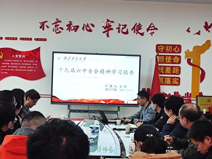铸造第二师生融合党支部副书记张朝带领大家集体学习了党的十九届六中全会精神。