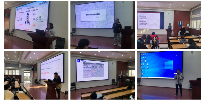会议伊始,朱莉和刘建喜给所有学生进行了简单动员后,由选择就业的嘉宾刘昱东、赵笑笑、刘金花、李鑫港、余尚佳、李国敬六位同学,依次分享求职过程中一些艰难和有趣故事、感悟和酸甜苦辣,此外,他们还从不同角度告诉同学们求职前应做的准备,如学习成绩、科研、行业选择、简历准备、实习等,希望研一新生可以知己知彼,提前做好准备,不打无准备之仗。选择读博的马世通告诫大家要提前做好准备,提前确定自己的目标和追求,同时要多和师兄师姐、同学交流,扩大自己的知识范围,多锻炼自己的能力,包括但不限于寻找问题,解决问题。