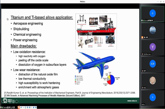 宋霖副教授和新西伯利亚国立技术大学的Daria Lazurenko教授共同主持。会议围绕轻质高强钛铝基金属间化合物的基础研究、加工制备技术和应用前景等方面进行了深入探讨。