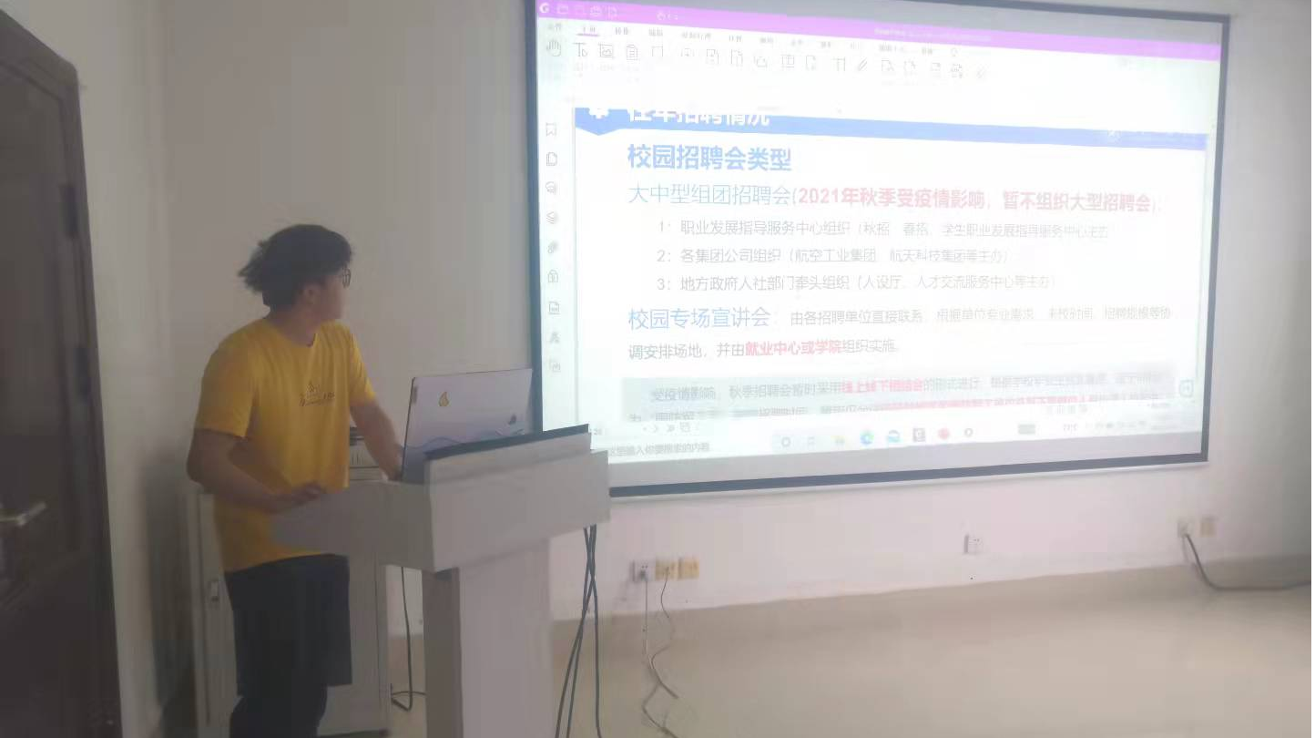 会上,刘建喜老师重点向同学们分析了当前的就业形式,并就学校2022届就业有关政策进行了重点解读。刘建喜老师结合学院往届就业情况重点分析了就业行业需求等,并对重点就业单位进行了推介,同时鼓励同学们要尽快熟悉了解就业市场情况,尽快适应就业环境,在遵守疫情防控有关要求的基础上,多听、多跑,抢抓机遇,寻求机会,为自己寻求一份满意的工作。