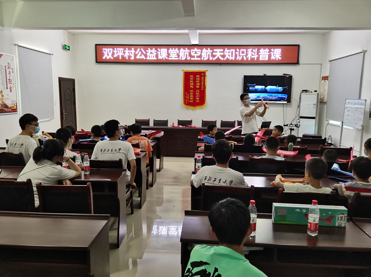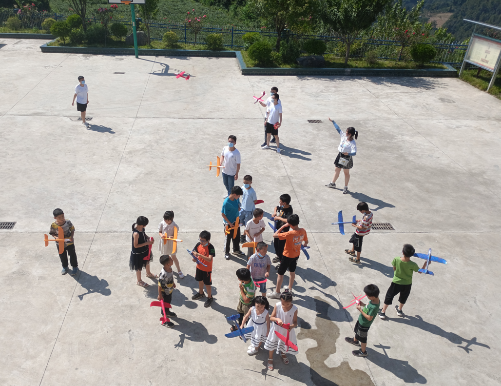 锻压第二师生融合党支部副书记张洪瑞还为双坪村小学生们带来了一堂航空航天科普知识教育课。活动内容包括:航空航天科普知识课、中国空间站介绍、飞机结构介绍、飞机模型组装和放飞。同学们对航空航天充满了好奇和热情,在放飞飞机模型活动中,村委会院子里满是同学们欢乐的笑声和灿烂的笑脸,一架架飞机冲向蓝天,让希望的种子从此扎根。