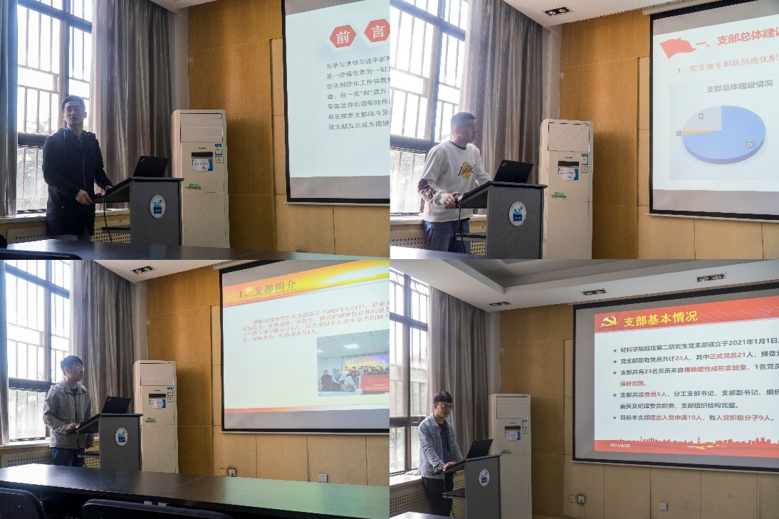 “三创三力”样板学生党支部培育创建活动,是党委学生工作部以“两学一做”学习教育常态化、制度化工作和“对标争先”建设计划为载体,坚持“培育为基、重在建设、典型引领、整体推进”原则,切实推进学生党支部建设全面进步、全面过硬的重要举措。2021年学院共12个学生党支部申报“三创三力”样板学生党支部创建活动。答辩交流会上,12个支部以PPT答辩的形式展示了支部基本信息和支部特色,各申报支部立足自身实际情况和特点,重点阐述了党支部创建的思路、目标、实施计划、预期成效等内容,并提出了各具特色的创建方案。碳材料师生融合支部积极探索“互联网+党建”的模式,提出了“线上10万分,线下领航人”的创建目标;金属材料第一研究生党支部以支教帮扶为切入点,旨在通过支部与社企对接,助力解决社会问题,创建学习氛围好、办事能力强、社会认可度高的效能型党支部;功能材料第二研究生党支部联合后勤产业集团物业服务中心开展“美丽工大”绿化活动,学习老一辈工大人植树育林的艰苦精神,开展老校区绿色种植活动,旨在形成支部精品化特色活动······