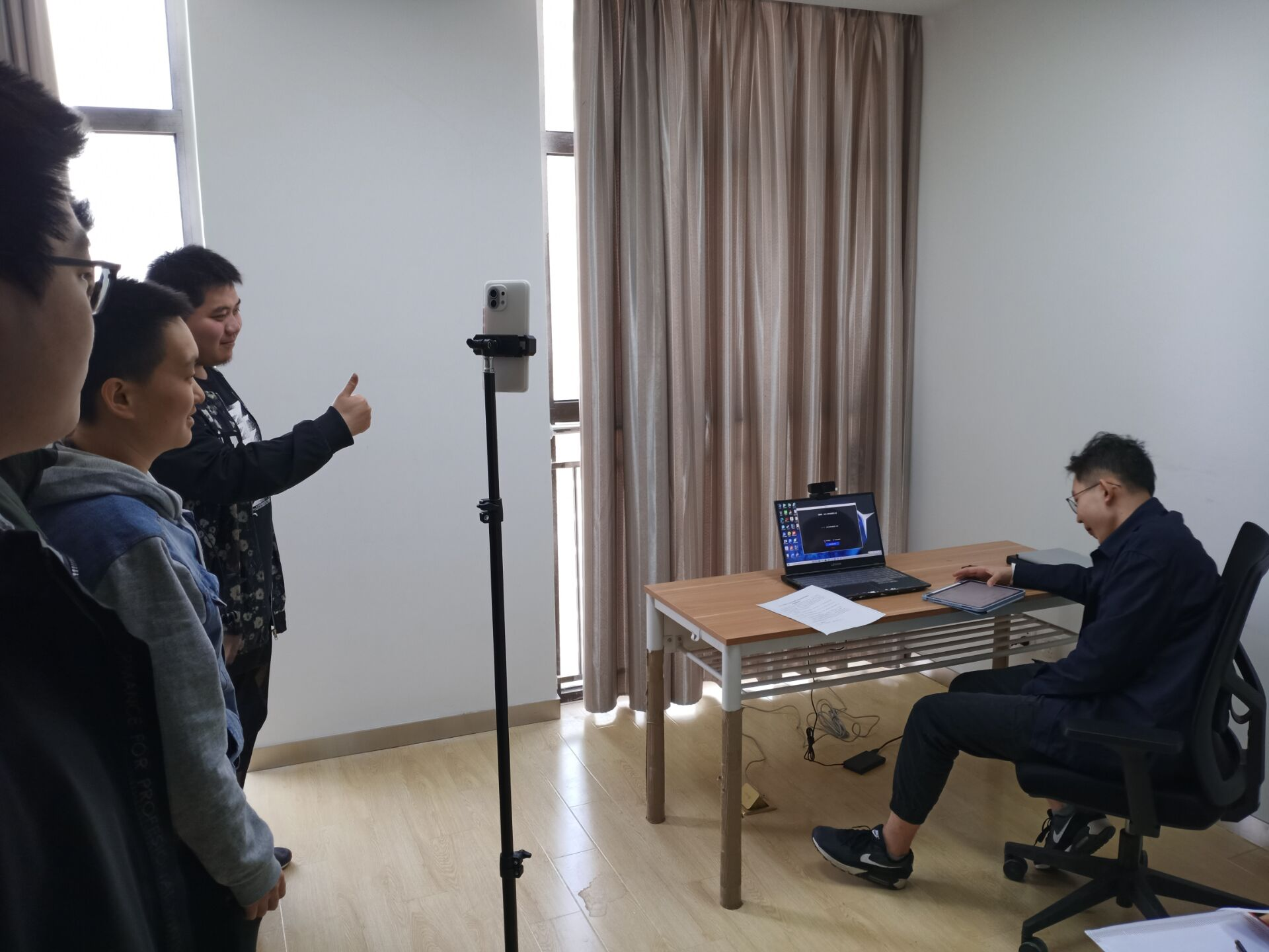 同时,为了使备考同学放松考试心情,党员志愿者在为每一个进入考场同学整理好场地、调试好设备之后,并在同学们进入考场之前给与每位备考同学诚挚的祝福,祝福每位同学复试顺利。
