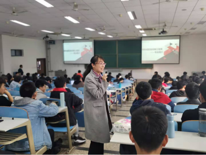罗皎教授首先就材料成型及控制工程专业对同学们进行了简单的提问,询问同学们对这个专业的认识。紧接着,罗老师就专业概况、师资队伍、研究背景与研究方向、创新成果、平台建设与科学研究五个方面对同学们进行了详细的讲解。最后罗老师就同学们感兴趣的有关未来发展方向、就业领域等问题一一做了解答。