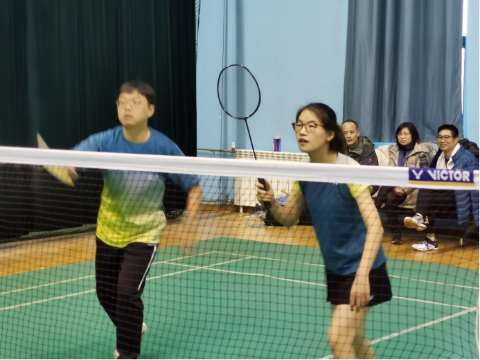 凭借默契配合和拼抢意识拿下对手,先下一城。孙磊与鲍晓冰与校医院混双对手继续过招,双方你来我往,虽然学院两位选手搭配时间不长,但非常默契,比赛中紧紧咬住对手,由于对手配合更加默契且实力搭配更加均衡,不得已败下阵来。高峰与巩玉同继续对阵校医院男双对手,凭借精妙配合走位和凌厉扣杀,换妻