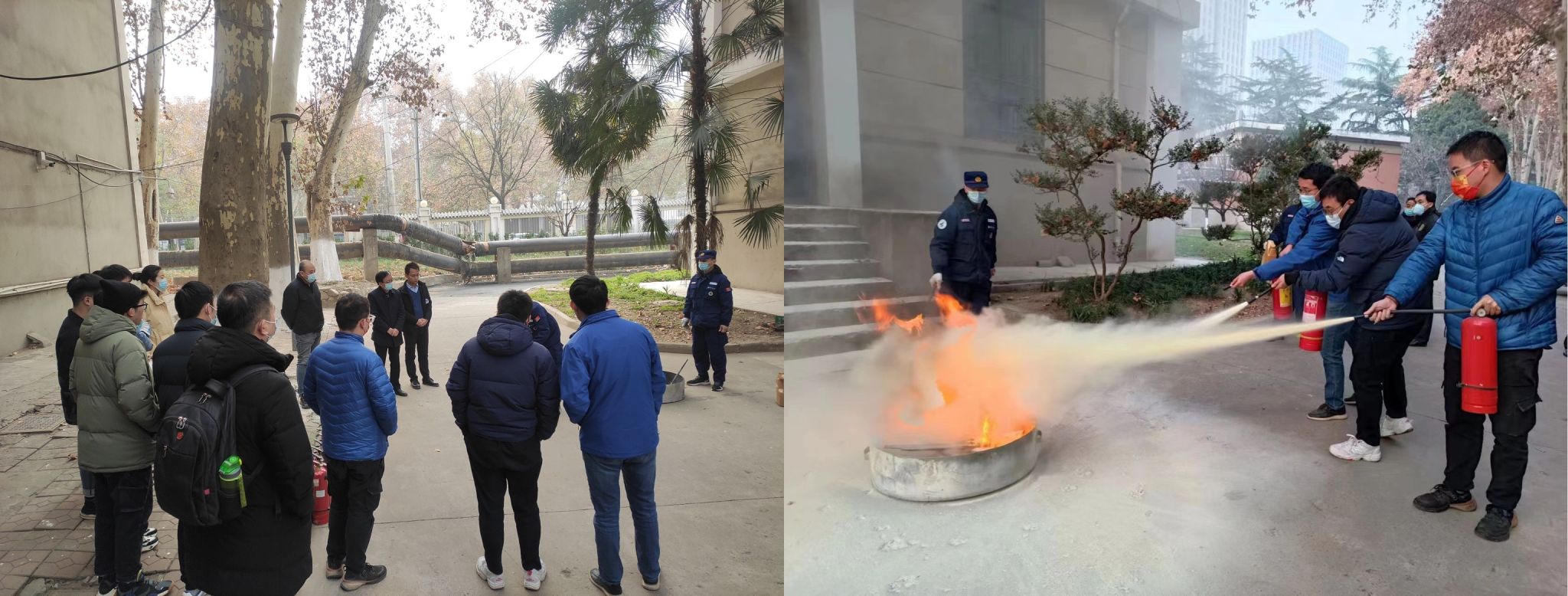 会后,保卫处消防科老师向学生展示和讲解了灭火器的使用方法和注意事项,组织全体参会师生在公字楼附近空地进行了火灾的实地演练,并告诫师生们在面对火灾时要沉着冷静,不恋财,将自己的生命安全放在第一位。在场师生都积极响应,按要求进行认真演练,有效掌握了灭火器的使用方法。