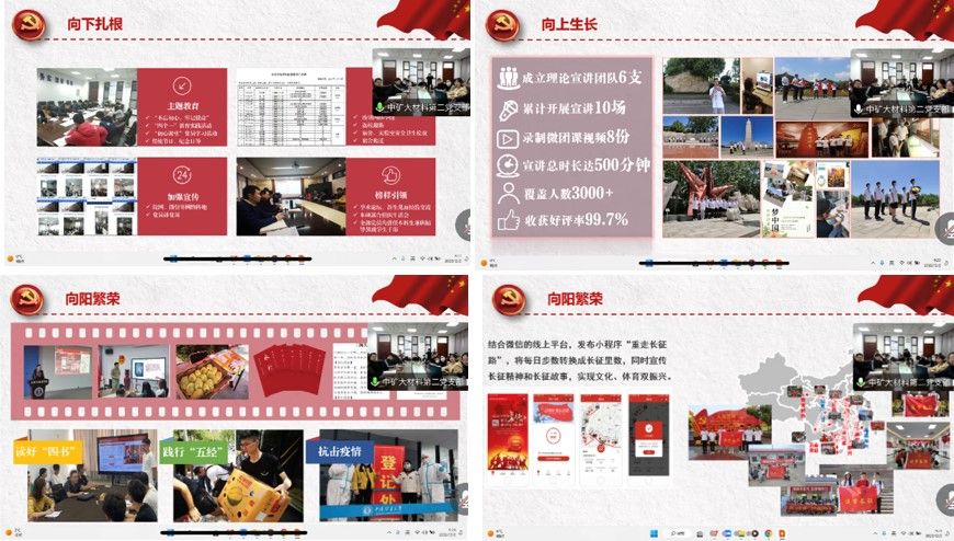 会议第二项,中国矿业大学材料科学与工程研究生第二党支部书记朱娜娜介绍其样板党支部建设经验,主要分为向下扎根和向上繁荣两大部分。中国矿业大学材料科学与工程研究生第二党支部加强主题教育,进行“不忘初心、牢记使命”主题教育,进行“四个一”教育实践活动,同时加强在院网、微信等平台的宣传推送。其支部特色为抗击疫情和脱贫攻坚,支部多名成员参加校研究生支教团,充分发挥“领头雁”作用,把助力打赢脱贫攻坚战纳入到支部工作主线中。