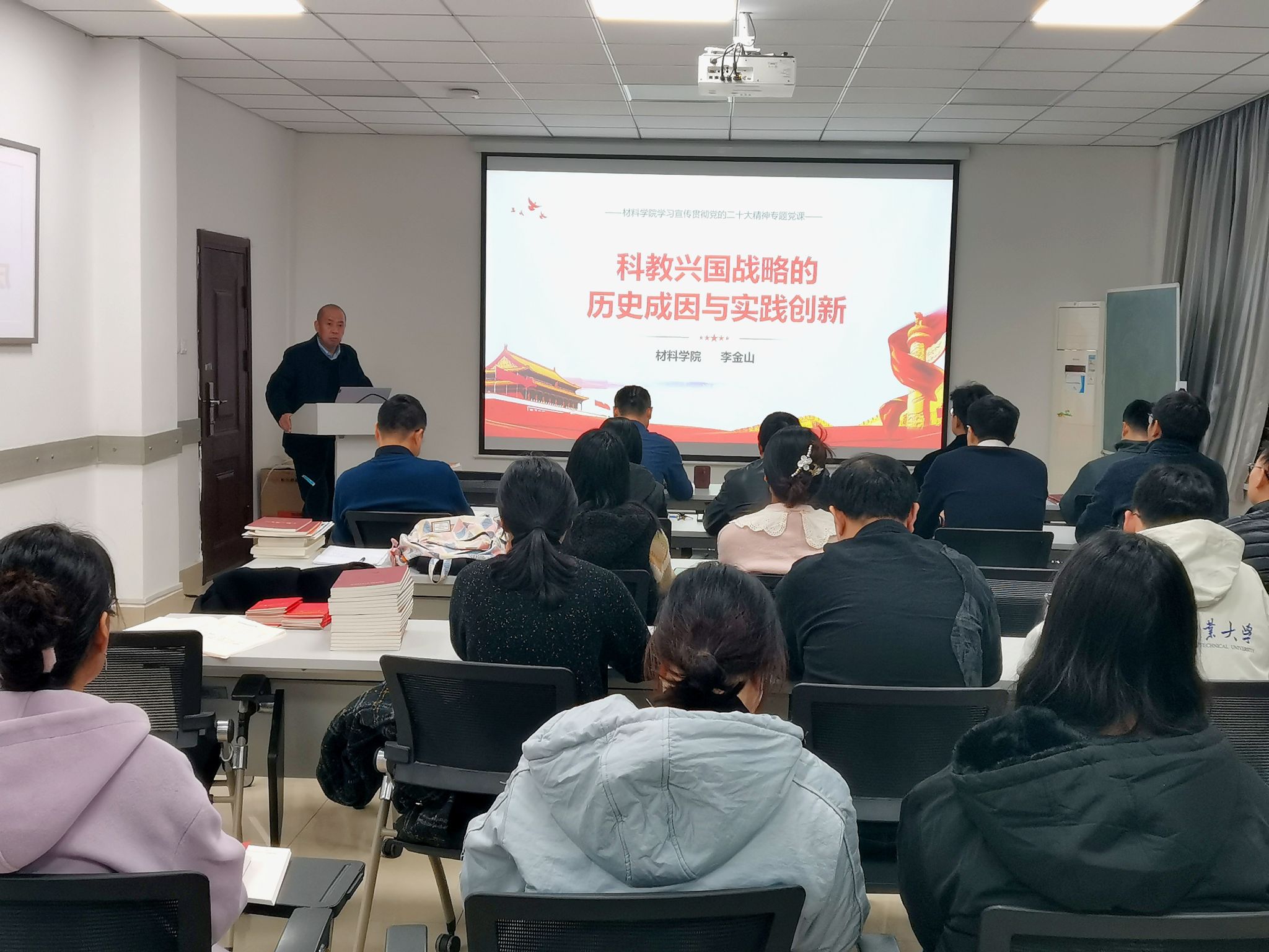 金属材料师生融合党支部邀请学院李金山院长为支部全体党员讲授党的二十大精神专题党课。本次党课由支部书记王军主持。