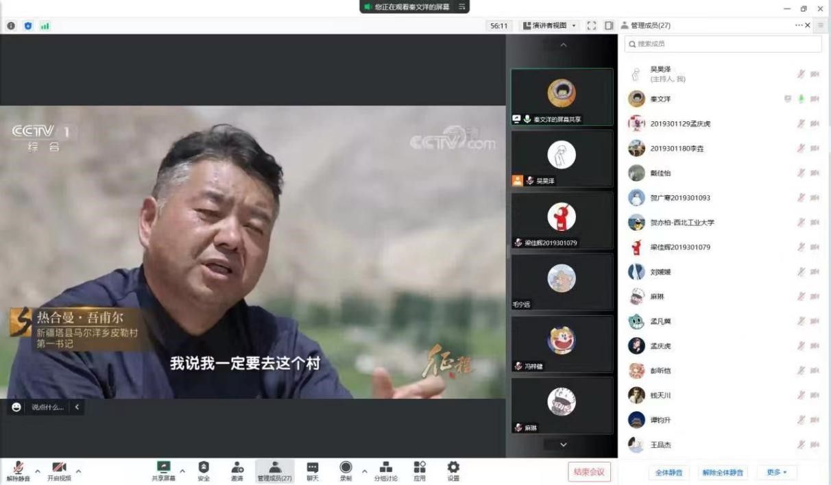 首先,吴昊泽领学了党的二十大报告,并重点解读了与青年密切相关的部分内容,传达了学校学习贯彻党的二十大精神、全校干部师生大会和共青团陕西省委书记徐永胜来校做党的二十大精神宣讲报告会精神。