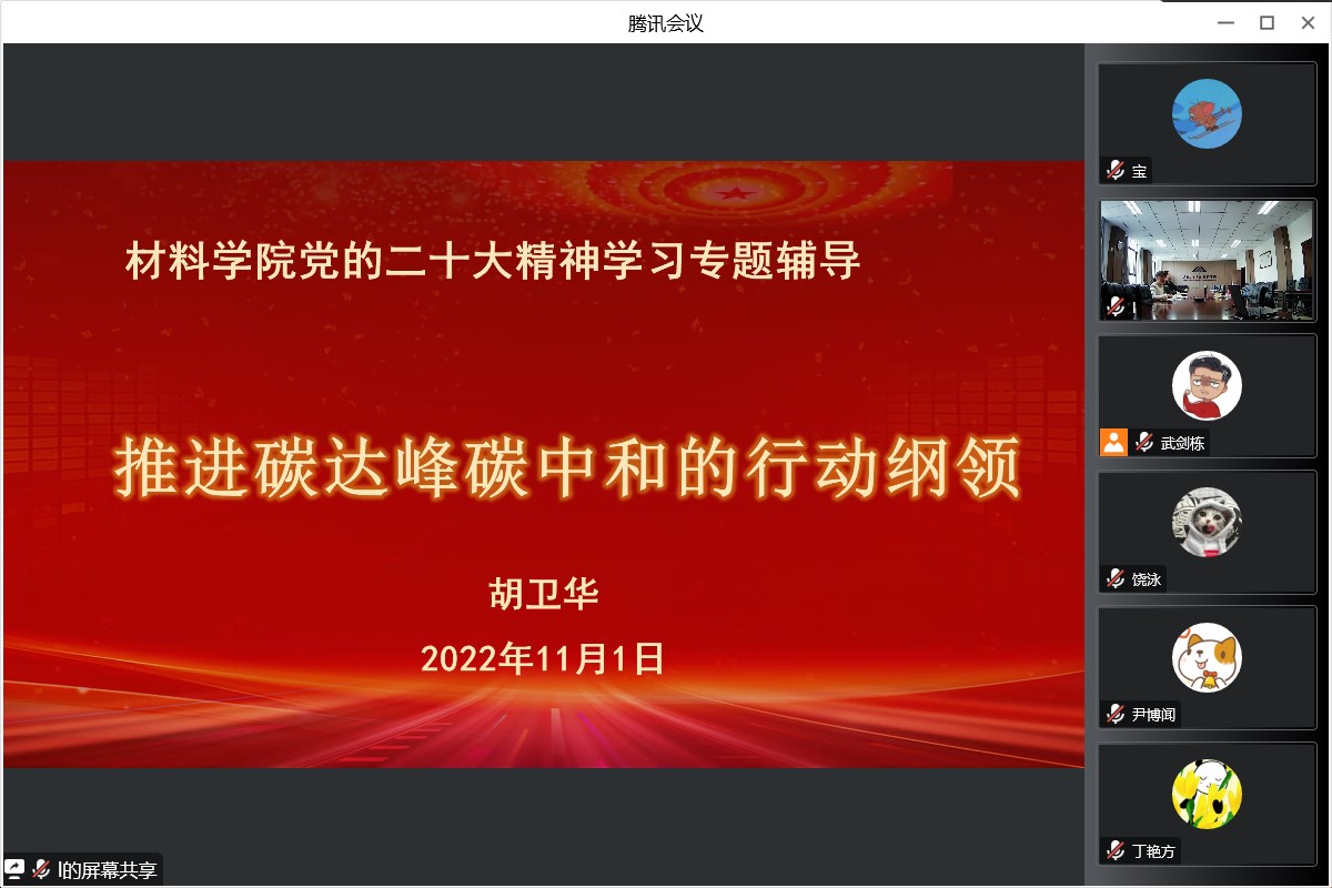 党委纳米能源第一、第二师生融合党支部承办的“大材良治”——第一期党的二十大精神学习专题辅导讲座在公字楼会议室、东馆报告厅通过线下和线上相结合方式举行。本次讲座邀请了省委党校胡卫华教授讲授“推进碳达峰碳中和的行动纲领---党的二十大精神解读”,学院党委理论学习中心组成员、纳米能源第一和第二师生融合党支部党员聆听了本次讲座,换妻