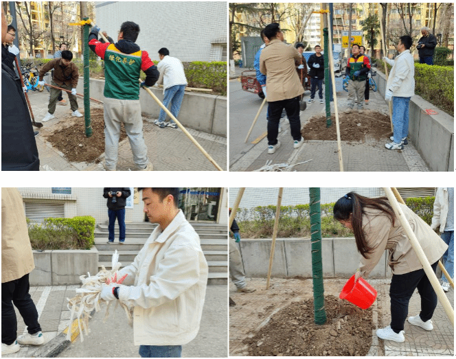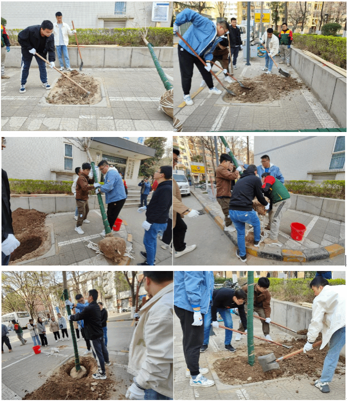 校歌墙前集合,大家积极分组分工,现场气氛非常热烈,手持铁锹,干劲十足。老师与学生党员一起齐心协力共同完成了种植,很快在校歌墙前种下了代表青春和绿色的希望之树。