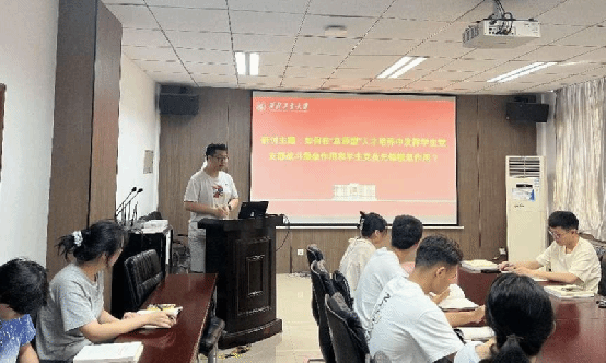 党委副书记蔡利剑讲授专题党课,学院全体学生党支部书记及负责学生党建专职辅导员张曦老师参会。