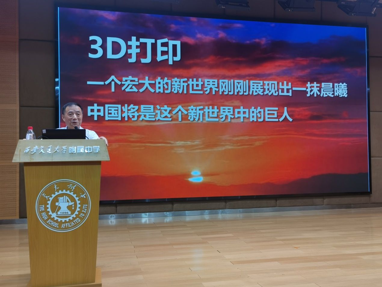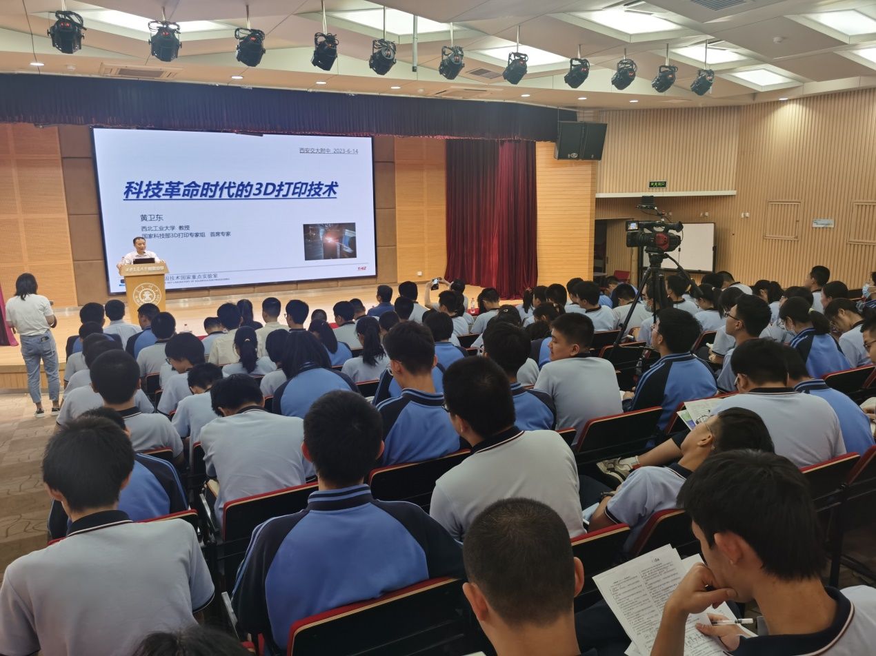 黄卫东教授做了《科技革命时代的3D打印技术》的科普讲座,交大附中高中一年级学生参加了本次科普讲座,讲座由交大附中教务处主任和岩主持。