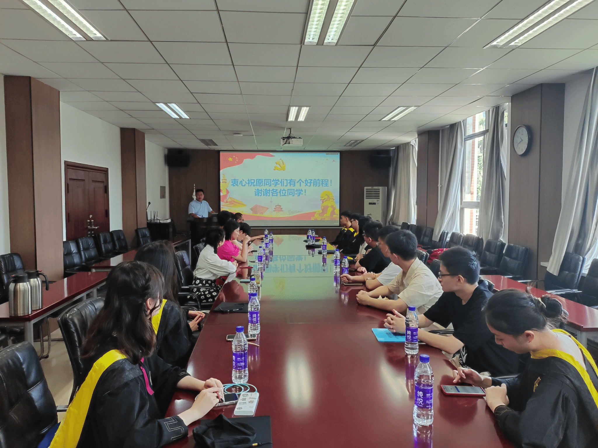 最后,李恒书记对毕业生代表们提出的建议和意见表示感谢,希望同学们毕业后继续保持优秀,成为有真材实料的国家栋梁,希望同学们常回校看看,为学院发展建言献策。