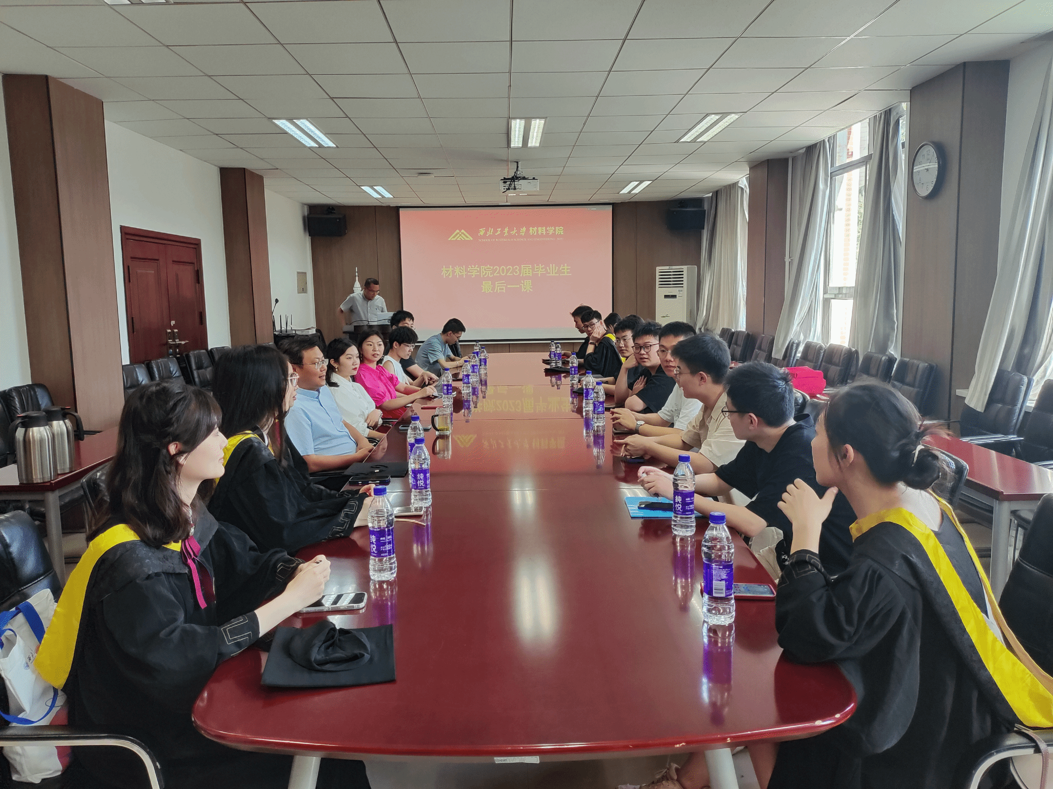 在公字楼322会议室召开了2023届本科毕业生“最后一课”与优秀毕业生座谈会,学院党委书记李恒为毕业生讲授“最后一课”。向毕业生们表达了嘱托与祝愿。学院党政领导班子成员、专职辅导员,以及毕业生代表共同参加活动。