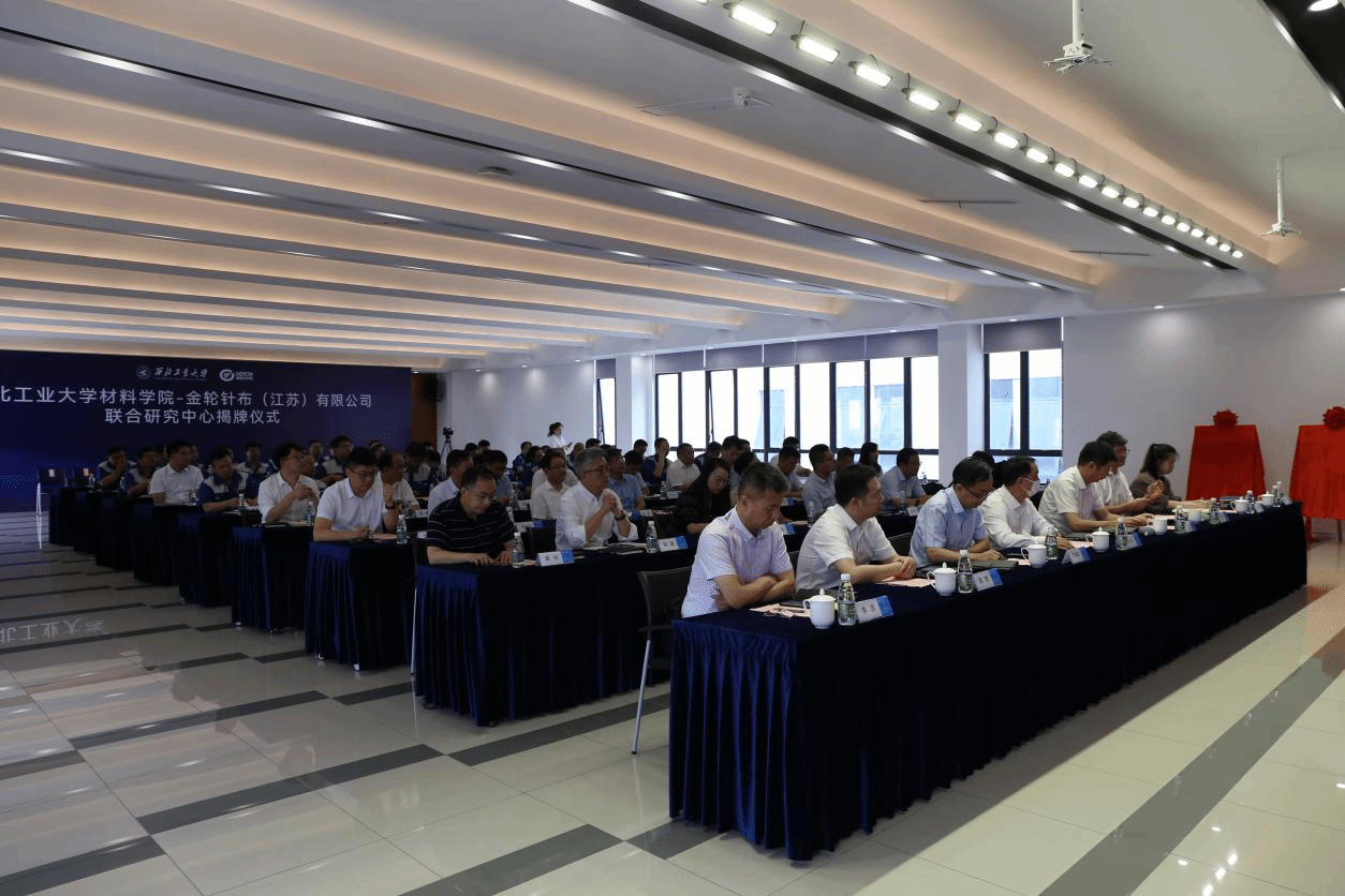 副院长苏海军、院长助理杨勇、教授李付国、冯丽萍、陈忠伟,学校科研院产学研办公室主任李源,物产中大实业公司党委副书记、总经理、物产金轮党委书记、董事长郑光良,物产金轮党委副书记、总经理汤华军,物产金轮党委委员、副总经理高誉以及企业技术骨干100余人等出席签约揭牌仪式。仪式由金轮针布(江苏)有限公司总经理黄宏兵主持。