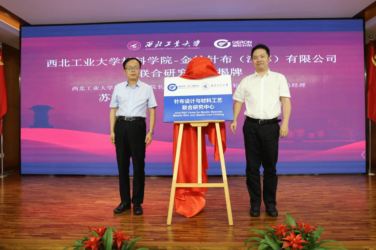 与金轮针布(江苏)有限公司举行共建“针布设计与材料工艺联合研究中心”揭牌仪式。海门区副区长邓阳,海门区企业创新中心主任侯剑菁,换妻