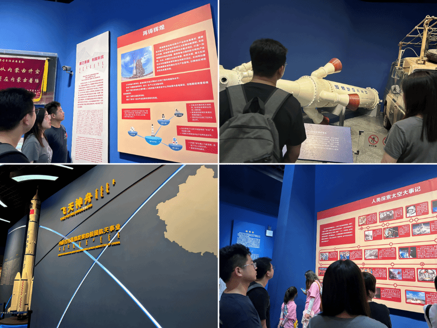 各种各样的展示板,火箭、卫星、导弹模型映入眼帘,讲解员用心地讲解,中国航天科工六院创建60周年,筚路蓝缕以启山林,实现了从无到有、从小到大、从弱到强的巨大飞跃,创造了中国航天固体动力事业的许多项辉煌。