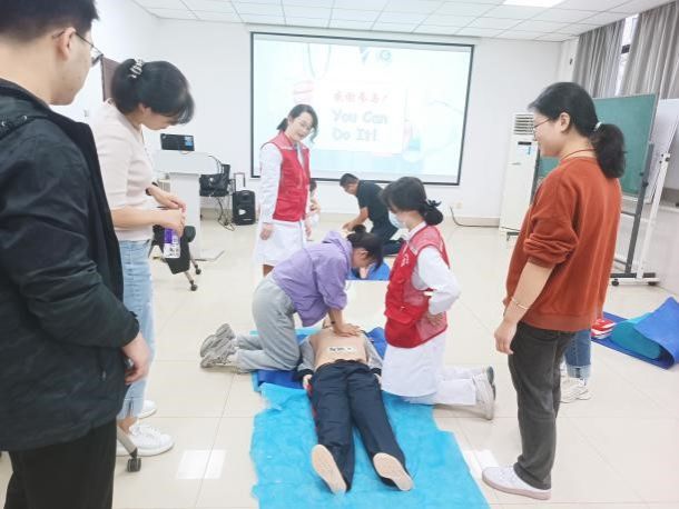 责任医师张萌等一行五人在公字楼328会议室为师生进行了安全教育和急救技能培训。此次活动由部门工会联合学院机关党支部主办。