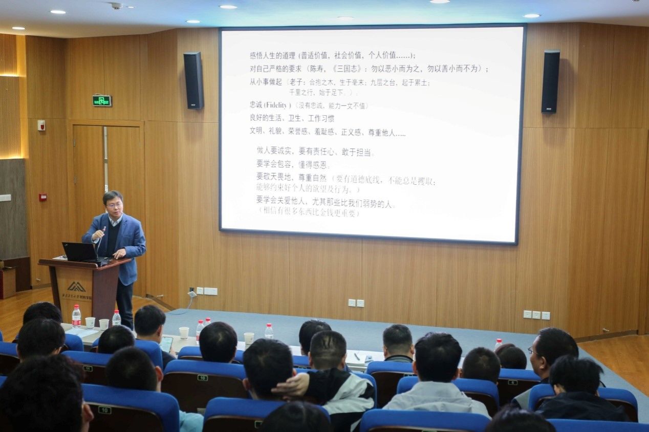 报告中,刘维民院士结合自身三十多年的科学研究工作经历分享了对科学技术的认识和思考,援引一系列历史典故阐明了建立良好师生关系的重要性,运用大量数据和鲜活案例说明了加强科研规范的重要性以及科研失信的严重后果。他强调,教师要激励引导学生,培养学生对科研事业的热爱,提高学生对科学现象、科学问题和科学规律的洞察力,学生要有明确坚定的目标,善于观察思考,恪守学术规范,在学术研究中始终牢记“创新和诚信缺一不可”。他希望全体师生勤奋学习、刻苦钻研,努力做一个爱国忠诚、责任担当、敬业奉献的人,为国家和社会发展做出自己的贡献。