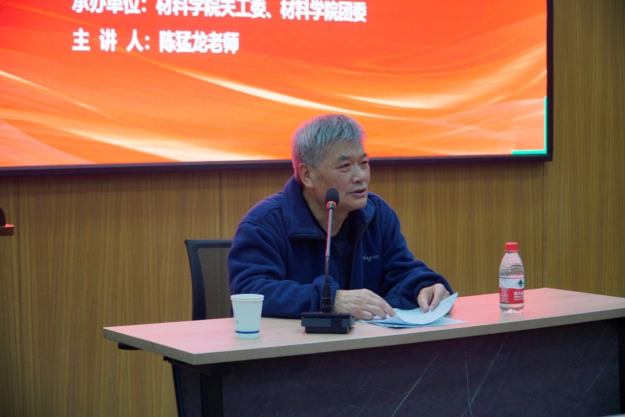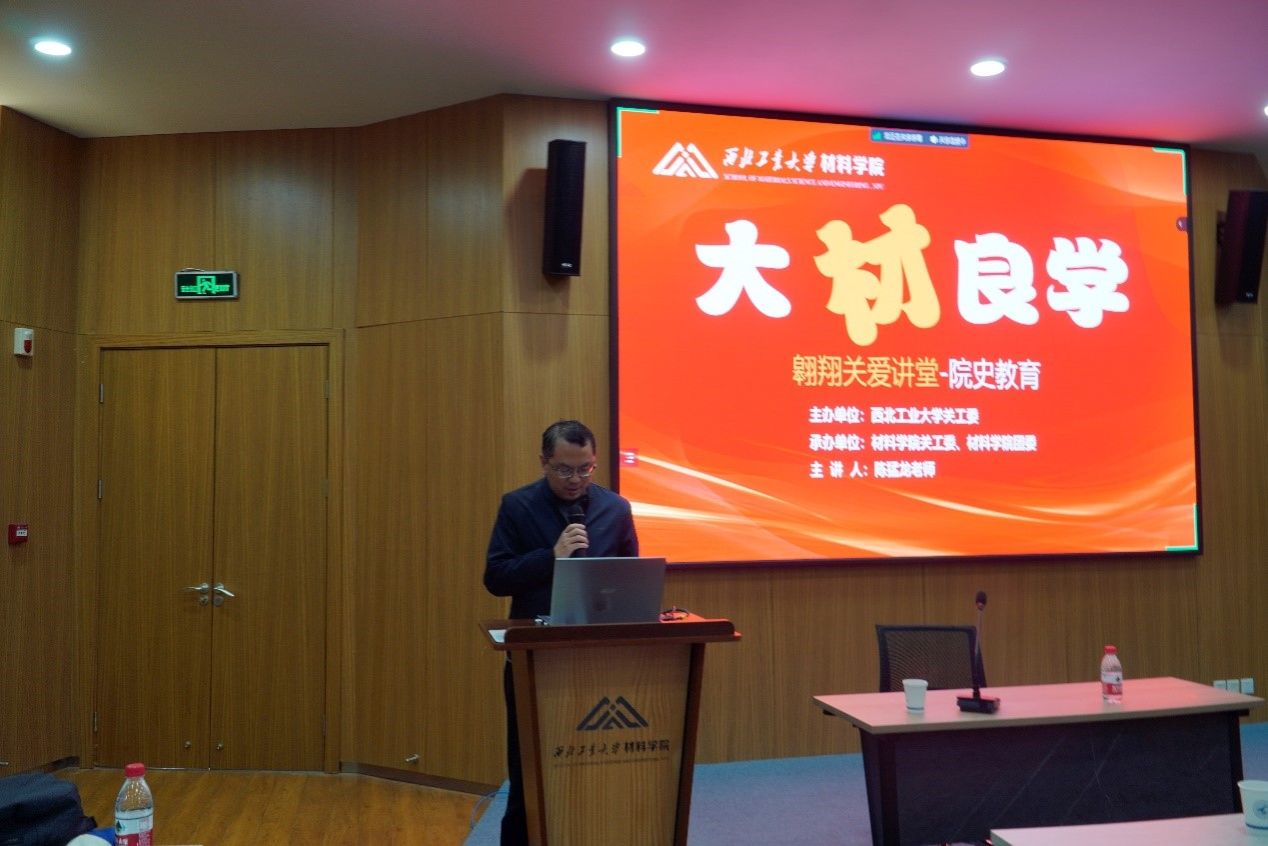 的发展贡献了巨大的力量。陈老师通过回顾学院的历史沿革,以及分享傅恒志院士、张立同院士等老一辈材料人的求学、科研和育人故事,让在座的同学们感受到了学院深厚的文化底蕴和人才辈出的光荣传统。