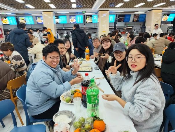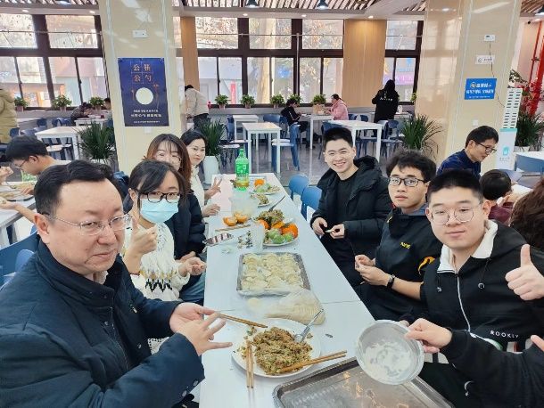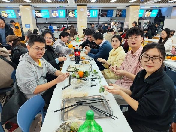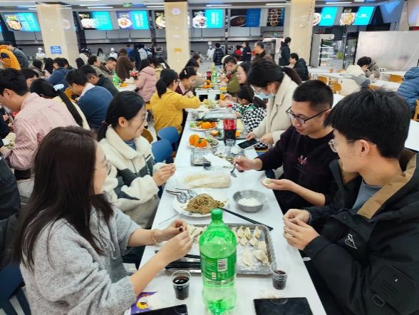 一碗碗热气腾腾的饺子让这个寒冷的冬季暖了起来,大家共同品尝着劳动成果,一口咬下去皮薄馅多,味道鲜美,每一口都是满满的幸福,食堂里充满着饺子的香气,师生们举杯共饮敬此年、贺来年。