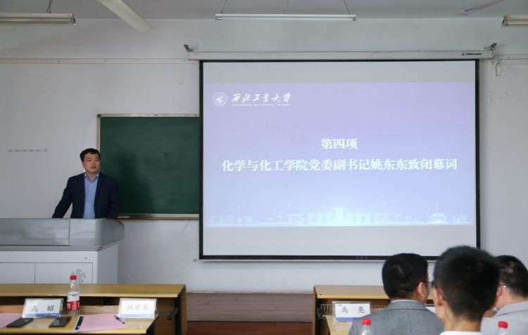 化学与化工学院党委副书记姚东东致闭幕词。姚东东对此次学术论坛的成功召开表示祝贺,肯定了各位同学的高质量研究汇报,希望同学们再接再厉,取得更加丰硕的高水平科研成果。并希望以此论坛为契机,继续加强学院之间的交流合作,不断完善材料与化工“总师型”人才培养体系,推进学术交流,促进学术研究,展示学术成果。
