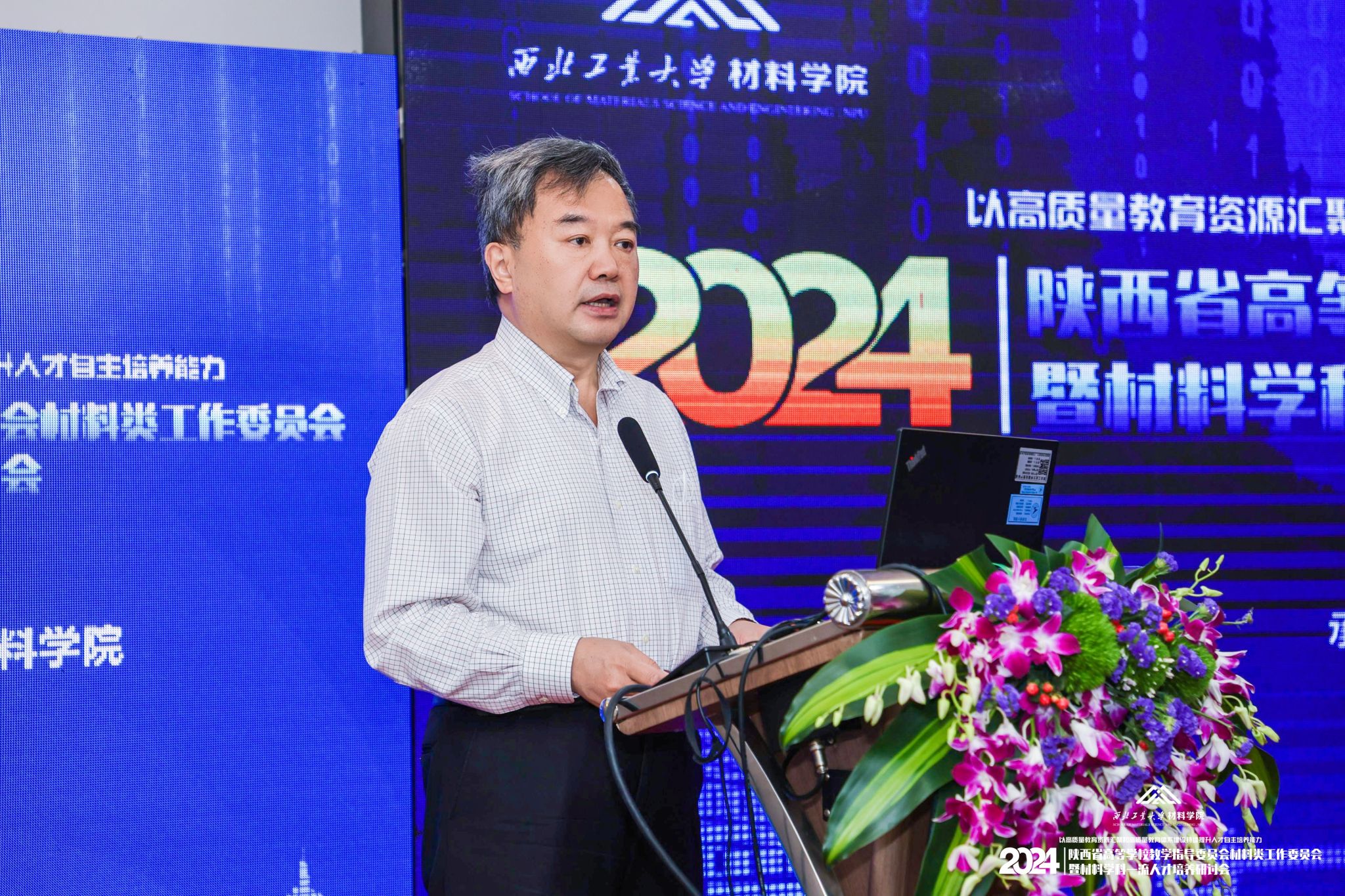 中国工程院院士、陕西省教指委材料类工作委员会主任李贺军出席开幕式并致辞,他表示高等教育是深入实施科教兴国战略强化高质量发展的基础支撑,要以一流教学成果凝练为牵引,深化一流专业内涵建设,推进课程思政高质量发展,强化实践创新发展,加强实验室安全管控,以高质量教育资源汇聚和高质量教育体系建设,构建一流人才培养体系。期待与会专家围绕思政育人格局,一流专业建设、高水平教材和课程建设等主题多分享宝贵经验,为提升材料学科人才自主培养能力贡献智慧与力量。