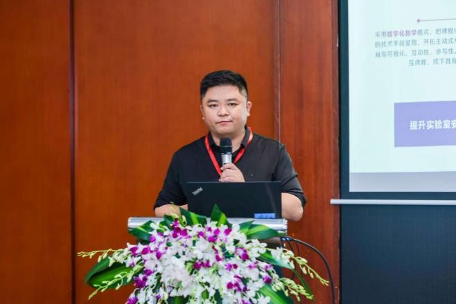 清华大学实验室管理处副处长艾德生以《高校实验室安全制度体系要点解读》为主题,从高校实验室安全现状、安全制度体系建设、实验室安全隐患风险点等方面解读了实验室安全管理要点,他强调要严格遵守实验室安全规则,防患于未然。