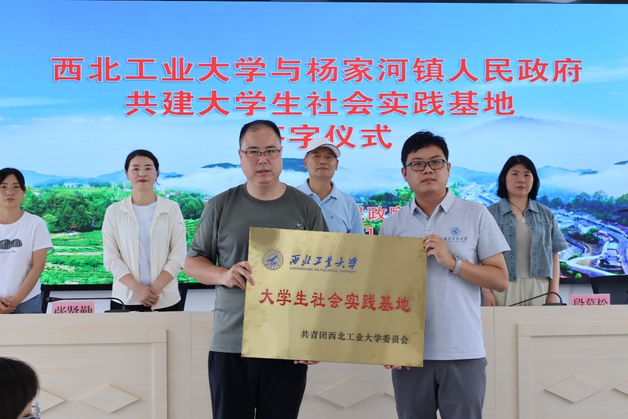 在汉中市镇巴县杨家河镇举行社会实践基地挂牌仪式。杨家河镇党委书记张贤勤、镇长陈定科、镇人大主席汪娟、换妻
