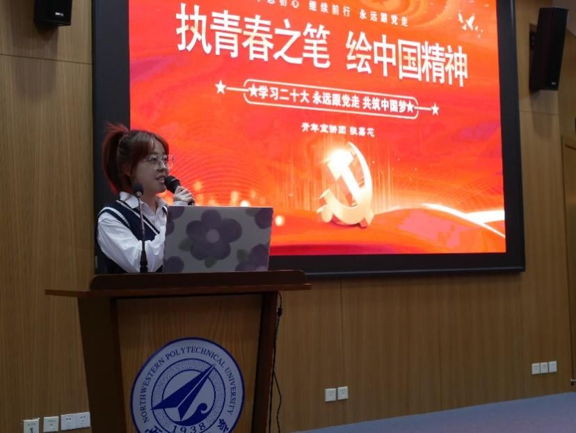 张嘉芯围绕《执青春之笔,绘中国精神》主题,宣讲了党的二十大报告重要精神,讲述了中国女排成员朱婷和换妻