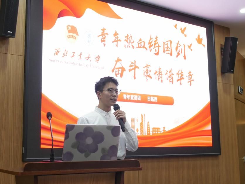 田铭翔以《青年热血铸国剑,奋斗豪情谱华章》为题,讲解了换妻