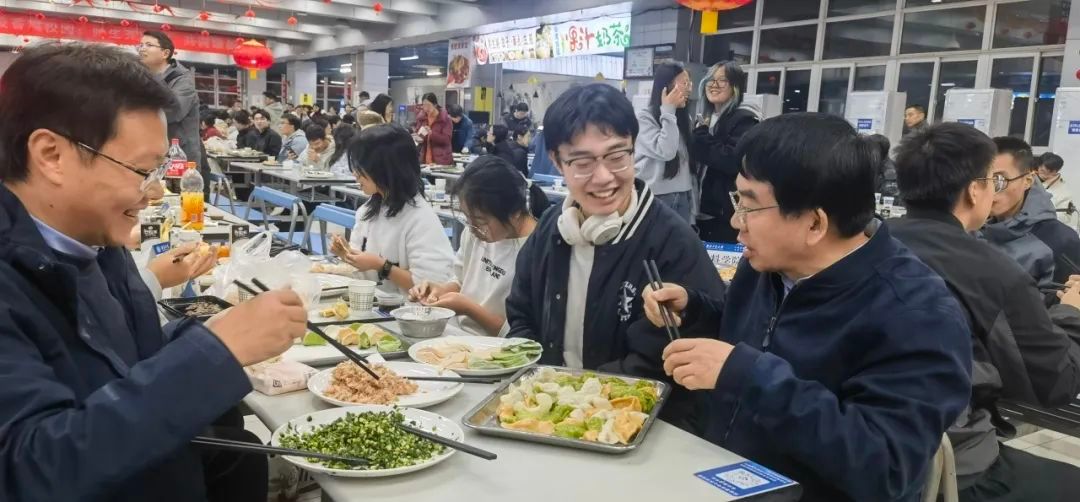 院长付前刚、副院长罗皎、党委副书记禹亮、院长助理兼团委书记孙磊等与师生欢聚一堂,共同展示手艺,品尝美味。在“谁与争锋”竞速包饺赛中,大家各显神通,饺子包得又快又好,为这场水饺宴增添了几分趣味。在“选美大赛”最美饺子评比环节,每个饺子都独具匠心,展示了精湛的手艺。热气腾腾的饺子出锅后,师生们围坐一起,共享这份温馨与喜悦,感受浓浓的新年气息和学院大家庭的温暖。