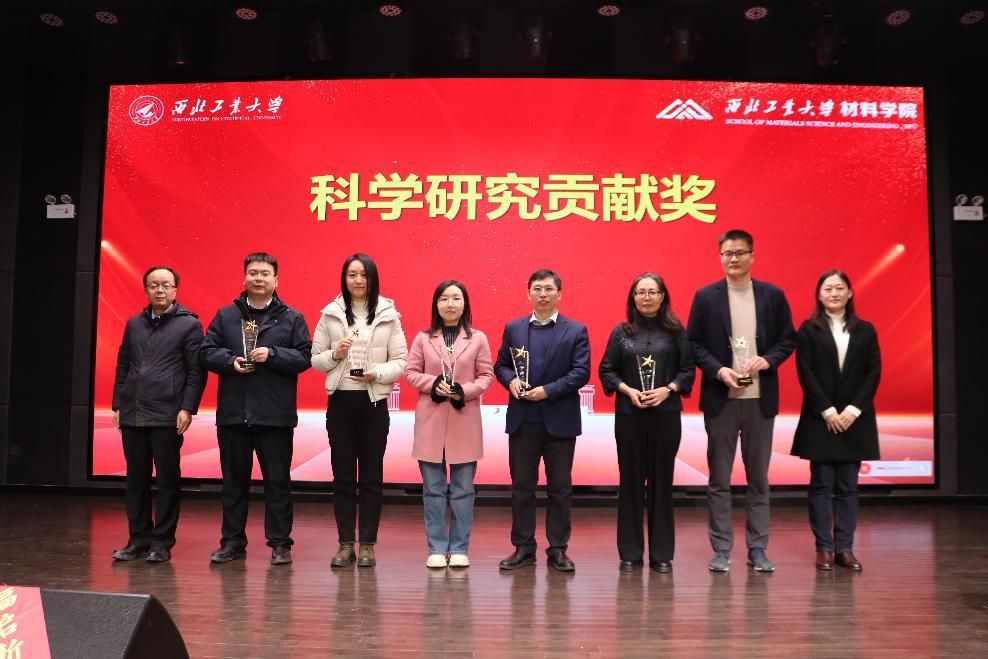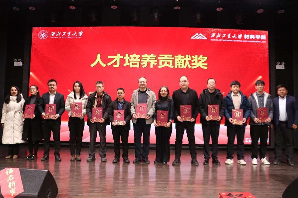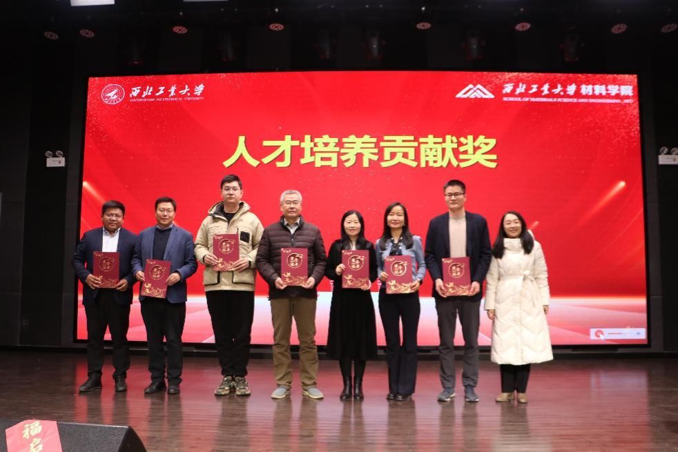 李京龙、刘峰、詹梅、李晓强、李文亚、罗发老师为2024年新入职教师颁发“师德传承杯”,激励年轻教师传承和弘扬“总师育人文化”,培养更多材料特色“总师型”人才。