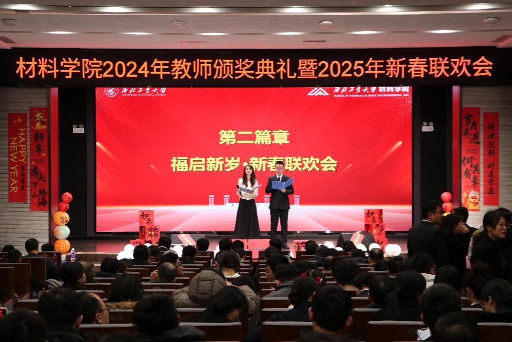 举办2024年教师颁奖典礼暨2025年新春联欢会。人力资源部部长、党委教师工作部部长、高层次人才办公室主任唐玉生,校团委书记佘磊磊,科学技术研究院科研综合处副处长常威威,教务部副部长傅茂森等出席典礼。学院领导班子成员、师生代表等近300人欢聚一堂,在喜庆热烈的气氛中回顾过去一年的辛勤付出,盘点收获的累累硕果,共同迎接新春的到来。换妻