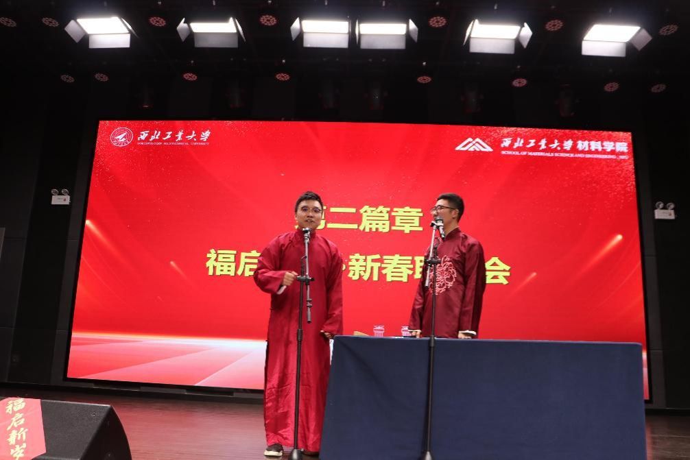 合唱类节目燃爆全场,分析测试中心全体教师合唱的《奔跑》《祖国不会忘记》,铸造方向师生合唱的《歌唱祖国》以及机关党支部全体成员带来的《东方之珠》,用激昂歌声传递奋进力量,深情演绎对祖国的赤诚热爱,引发全场共鸣。金属材料师生融合党支部杨芳、卢艳丽老师与学生张晋鸿、郭建军的朗诵《新年你好》,传递出对新年的美好期许。《这世界那么多人》《小幸运》等师生对唱和《江南》等独唱曲目,各具魅力,令人陶醉。吉他弹奏《like a star》灵动悦耳,指尖流淌的音符仿若闪烁星光。相声《规矩论》凭借幽默风趣的段子、默契十足的配合,逗得观众前仰后合,掌声、笑声此起彼伏。