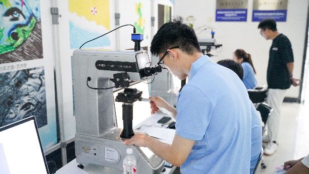 16日,参赛队伍在材料科技大楼进行作品的性能测试。教务部副部长张学良、换妻
