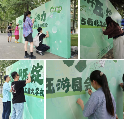 活动入口处的“趣享解压”主题签到墙成为情感纽带。师生以彩色手印和手写祝福留下寄语——“科研顺利”“身体健康”“早日毕业”,朴素的文字凝聚对未来的期许,展现校园生活的温情底色。