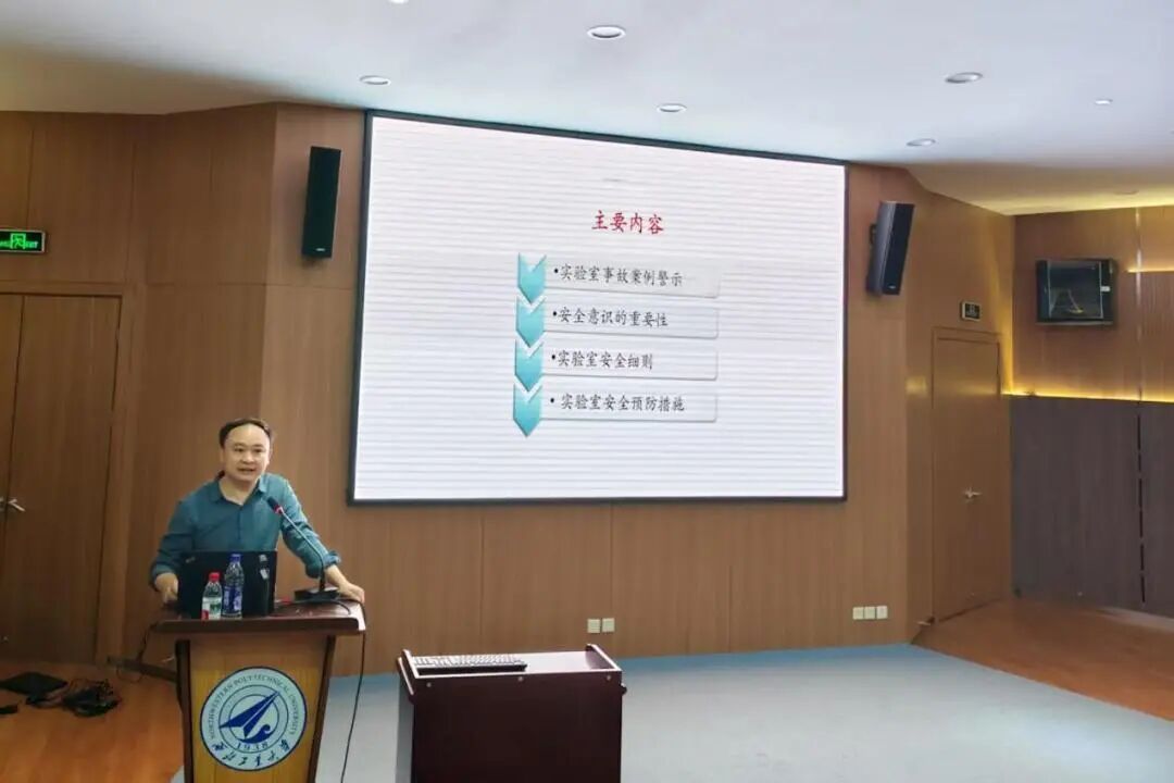 院长助理杨勇从实验室事故警示案例出发,通过触目惊心的真实案例,让同学们深刻认识到实验室安全的重要性。实验室安全是科研生命的红线、底线、高压线,要严格规范操作程序,做好安全防护,以严谨负责的态度对待每一次实验。