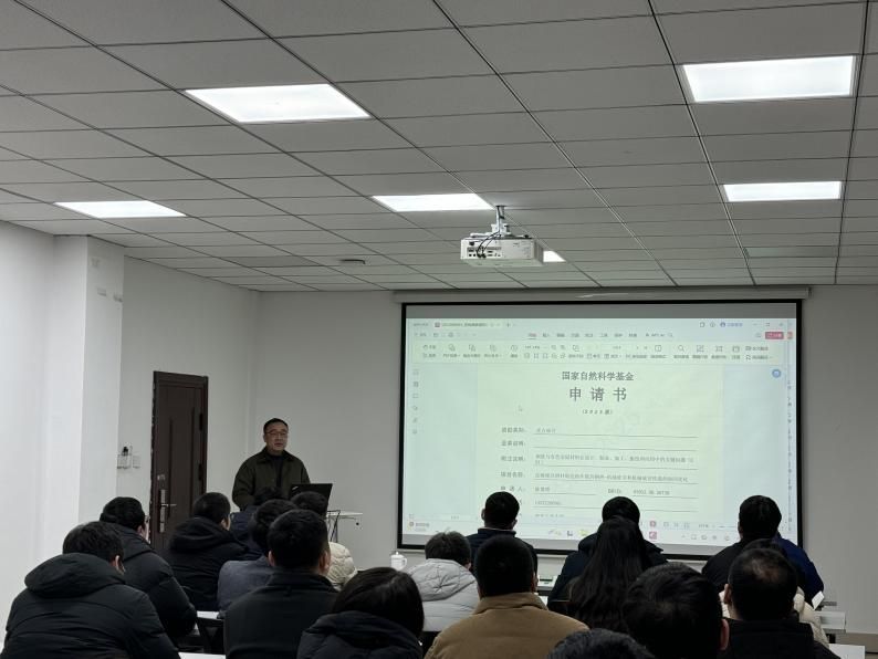 苏海军介绍了2026年度国家自然科学基金最新改革的政策,指出在学校和学院的大力支持及全体教师的共同努力下,学院近年来不断强化基金工作的组织辅导和全过程质量管理,取得了持续优异的成绩。他强调,全体教师要准确把握2026年度申报政策改革要点,坚定信心、提早布局,以本次辅导为契机,精心打磨申报材料,切实提升申请书质量,为成功申报奠定扎实基础。
