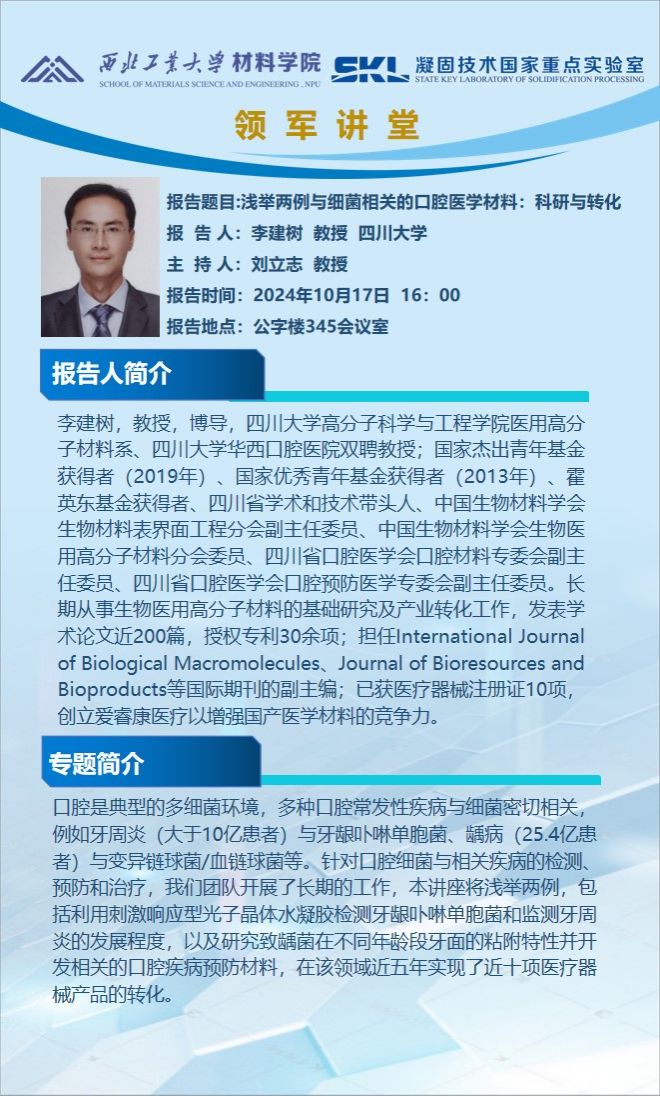 报告题目:浅举两例与细菌相关的口腔医学材料:科研与转化